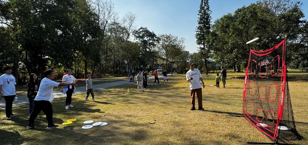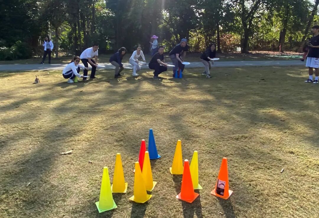 在飞盘团建环节中,该所职工和研究生按男女比例被分为8个小组,由专业教练指导飞盘技巧,并进行了一系列的团队游戏和比赛,比赛形式包括“仓鼠过冬”、“飞盘保龄球”、“飞盘九宫格”、“飞盘高尔夫球框”和“躲避盘”。最终,第三小组和第六小组分别获得了团体比赛的第一名和第二名。